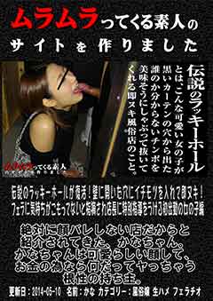 絶対に顔バレしない店だからと紹介されてきた、かなちゃん。かなちゃんは可愛らしい顔して、お金の為なら何だってヤっちゃう根性の持ち 主。店長に仕事の内容を軽く説明するからと連れて行かれた部屋は狭苦しい倉庫のような部屋に黒いカーテン。そのカーテンの真ん中には怪しげな穴がひとつ。 かなちゃんの仕事とはその黒いカーテンの穴に客が下半身だけ出すのでそれをヌキの処理をしたらいいだけのお仕事。そうです、これが伝説のラッキーホー ル!!ということで、早速、初出勤だけどヌイてもらいましょう。店長の指導の下、一人目を無事にヌキ、2人目をヌイてる最中に「かなちゃん、フェラテクは あるみたいだけど心がこもってないな」と店長からの指摘。自分でも感じたほうがお客さんにも伝わるからと説得しておっぱいサワサワ。 「僕が経験したほうがどこが悪いか指摘しやすいから、ちょっと気持ちこめてサービスしてみて」とリクエスト。もちろん、最後までフルコースでかなちゃんを 丸ごと美味しくいただきました! 無修正 メーカー 和物 素人 女優
