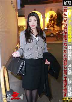 神崎美樹 40歳 女子校教師 今回の餌食は、No.171で餌食になった女子校生あんの担任先生が「あん」が行方不明になったとの知らせで生徒を探す 「美樹先生」。他生徒より、鬼畜とここに入って行ったという情報でアジトに入り込んできた。こうなりゃ、親子ドンブリならぬ師弟ドンブリで先生もいただい てしまおう。「美樹」は。歳は行っているものの熟女の色気と豊満な肉体がそそる。オールドミスで教師をやっているだけに気の強い性格は顔に出ている。気が 強ければ強いほど、鬼畜どもの逝かせ地獄の餌食としてたいへんおもしろい。負けん気な態度がやがてトロトロに溶け、従順な牝ブタ奴隷に成り果てていく様を とくとご覧いただこう。教師という仮面を剥がせば相当の淫乱な熟女であるに違いない。しかも巨乳で歳に見合わず均整のとれたカラダの持ち主である。逝かさ れまくる熟女の艶気と淫らしい肢体をさらけ出すに違いない。 熟女教師「美樹」の乳を鷲づかみにして下着の中の秘貝を電マの刺激が襲い掛かる。熟れきった生秘貝を淫手と淫具で荒々しく責め立てれば目を剥き、絶叫と痙 攣が止まらない。思ったとおりの淫乱熟女である。さらには極太ドリルバイブを秘貝に押し込み終わりのない責めに痙攣とアクメを繰り返す。やがて「淫乱変態 熟女」の顔を曝け出し教師は自ら生淫棒から発射される白濁液を欲するようになる。 無修正 メーカー 和物 素人 女優