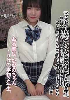 皆様こんにちは。前科4犯、借金2500万円、マッスル・キング次郎です。刑務所の主食は、麦3白米7の麦飯。 1日の栄養が標準値に設定されているため、脂も塩分も量も少ない。規則正しい生活とあいまって刑期を終えるとやせて健康的になります。なので、刑務所暮らしが長い私は時どき無性にファーストフードが食べたくなります。そしてファーストフードが好きなもう一つの理由、それはファーストフードの店内ではお勉強している制服学生がごろごろいるということ。10代が大好きな私にとって、”お導き”のチャンスはどこにでも転がっているものです。お勉強の邪魔はしたくないし、通報されても困ります。なので強引なナンパなどはしません。とにかく集中して制服姿を足から頭までジロジロ眺めます。すると全然集中できていない、辺りをキョロキョロしている幼い女の子を発見。というわけで、しれっと席を座り直し声かけしました。最初は警戒してましたが、ポテトをあげると笑顔になってくれました。おかわりのジュースも奢ってあげると喜んでいました。笑顔が可愛くてノリがよくてキュートです。勉強を見てあげるなんて言いながら楽しく会話。会話を進めると、どうやら「金欠」なようです。そのまま連れ出しちゃいました。お名前は、ひなのちゃん。10代の本物2年生。部活はバレー部でセッターを務めているらしいです。ホテルについても、ポテトやらメロンジュースを頬張りつづける、ひなのちゃん。食べている姿も可愛げがあります。「高額バイト」はもちろん初めて。緊張している様子でしたが、お構いなく生ハメしてやることに決めました。話してみると、えっちには好奇心旺盛の模様。どうやらキョロキョロしてる女の子はスケベのようです。初体験は中3の時。学校でもえっちしたことがあるという彼女。最近の子はませてるなぁ。驚いたことに理科準備室で、人体模型に見られながらえっちしたこともあるのだとか。スリルを求める積極的女子。”お導き”しやすそうな女の子です。恥ずかしがりながらも、撮られるのも楽しそうなひなのちゃん。この子は相当スケべのポテンシャルが高いだろうなと確信したので、いきなり耳を舐めてみます。耳を舐められると、声が出てしまうひなのちゃん。えっちな気配にすぐにスイッチが入ってしまったようです。舌を出してキスをすると、自ら私のチンポコをなでなでしてきます。10代学生のくせに稀に見るえっち大好き女子、ひなのちゃん。まだまだ大人の階段登り途中の女の子、次郎のギンギンチンポを触りたくて仕方ないようです。やめろというまで、息子を撫で続けてきます。上着を肌けさせると、フリルのついたかわいいお下着。ブラを下にずらしてあげただけで嬉しそう。えっちに興味はあっても、同じクラスの男子はおこちゃまばかり。こんな楽しいことを経験させてあげれる同級生はいないようです。ひなのちゃんの新しい扉をひらいてあげましょう。それこそが”お導き”です。さっき手でなでなでしていたので、足でもしごかせてあげます。すると本当に嬉しそうな、ひなのちゃん。こんな嬉しそうに足こきする娘みたことがありません。そんなに足でするのが好きなら、バレー部じゃなくてサッカー部に入ればいいのに。いや、ひなのちゃんが好きなのは、足で弄ることじゃなくて、エッチなことの方か。彼女のおパンツがちょっと汗ばんでいるようなので、いじってあげると声をもらしてきます。ひなのちゃんが、これから始まることを期待しているのがわかります。期待はマンコに現れます。手のひらにおさまらないほどの大きなお胸。10代の美乳は見てるだけで勃起が止まりません。完全に胸を露わにさせ乳首にしゃぶりつきます。エッチが楽しくて仕方ない、ひなのちゃん。我が息子を乳首に擦り付けさせます。息子をしごける喜びと乳首からくる快楽に、目がとろけてくるひなのちゃん。いよいよ、おパンツをぬがすと、なんと、おマンコの上に絆創膏が。剃ってる時に傷ついたから、つけていたんだとか。最近の10代は自分でお毛毛を剃ってしまうのですね。スケベすぎたので剥がしてもらいます。M字開脚して、マンコの上の絆創膏を剥がす本物学生。こんな姿が観れるのはここしかありません。若いのに毛を剃る意識高い系女子。いつでもえっちできるようにしているのでしょうか。自らの手でおマンコをおっ広げさせると、クリまで向いてくれる、ひなのちゃん。興奮からか、すでにヒクヒクしています。肌の白さに比べ、少々黒ずんだおマンコ。ここに10代のリアルを感じます。この暗がりに夢や希望が詰まっております。それでは、次郎のベロによる、フローターサーブをお見舞いします。クンニです。次郎はこのために前科4犯になったと言っても過言ではありません。ひなのちゃんは、奥からじんわり濡れてくるタイプで、まだ濡れきってないクリトリスの味をダイレクトに感じられます。舐めていると、液が