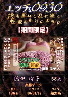 結婚30年目で夫と月1回エッチがあるという好き者の玲子さん。息子と同じぐらいのハメ師に興味津々。熟女の色気でエロティックに責めまくる淫乱な奥さんです!!有名女優 素人 美女 美少女 色白 スレンダー 長身 美乳 美尻 美脚 淫乱 痴女 M字 開帳 複数プレイ 巨乳 乱交 フェラ 手コキ 指姦 絶頂 パイパン 生姦 騎乗位 中出し DVD 和物ハメ撮り 美乳 フェラ 騎乗位 バック 中出し 個人撮影 フェラチオ 美女 顔出し 和物 無修正 ネット流出 DVD 和物