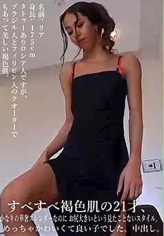 名前:リア身長:175cmタトゥーありロシア人ですが、ブラジル人とフィリピン人のクオーターでもあって美しい褐色肌。カッコいい黒のロングワンピースでモデルっていう感じの雰囲気。第一印象ですごい強気な性格なのかとびびってましたがしゃべってみると意外とそうでもない。というか静かで丁寧で、しゃべりやすくて愛嬌ある子でした。タトゥーはなんでしょうか、ファッションなんでしょうか、おっさんには分かりません。休みの日はジムでトレーニングしてる。すごいスタイル、顔の小ささと手足の長さがすごい。かなりスレンダーですがお尻はボリュームあります、ブラジルハーフだからでしょうか。ここまですごいくびれは見たことないですね。お腹はぺたんこです。(おっぱいも。)とりあえず一緒にシャワー。天井にもシャワー出てくるところがあるタイプで、どっちから水出てくるかわかんなくてリアちゃんビクビクしててかわいい。僕が何をしようとしているのか伺うような視線だったり、おどけるような仕草だったり、モデル系美女ってよりも内面は意外と普通の女の子って感じです。まあ若いですしね。いやホントすごい身体、是非見てみてほしいです。洗いっこしてたらチンコビンビンになりました、リアちゃんの身体エロ過ぎ。すべすべの褐色肌最高です。キスしたらどうしても挿れたくなっちゃったのでそのまま立ちバックで挿入。めちゃくちゃ気持ちいマンコでした。有名女優 素人 美女 美少女 色白 スレンダー 長身 美乳 美尻 美脚 淫乱 痴女 M字 開帳 複数プレイ 巨乳 乱交 フェラ 手コキ 指姦 絶頂 パイパン 生姦 騎乗位 中出し DVD 和物ハメ撮り 美乳 フェラ 騎乗位 バック 中出し 個人撮影 フェラチオ 美女 顔出し 和物 無修正 ネット流出 DVD 和物