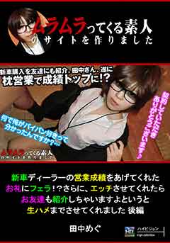 新車ディーラーの営業成績をあげてくれたお礼にフェラ!?さらに、エッチさせてくれたらお友達も紹介しちゃいますよというと生ハメまでさせてくれました 後編 [田中めぐ]