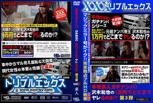 あの元祖ナンパ帝王 沢木和也が一万円でどこまでヤレる!シリーズが遂に第3弾として登場!即金、即決!?自称マジックミラー号(ワゴン車)wの中で娘達のドキドキハプニングが勃発!撮りたてホヤホヤを完全独占フルHD映像でお届けいたします♪お馴染み、駅で街角で声を掛けミラー号に連れ込んで言葉巧みで脱がせて行く!これぞナンパ道!そのテクニックと口説き文句を特とご覧あれ!さて、次の二人目は・・・高級バックをチラつかせる新婚さん若妻♪褒めちぎって脱がせてみると・・・ヤラしいおっぱいしてますねー♪出ました!七つ道具!沢木和也の豊富な知識の手マンで存分に感じちゃってくださ・・・・ま、マンカスが!!? 無修正 メーカー 和物 素人