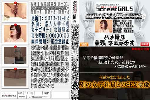 ASIAN流出シリーズ最新作!以前公開した某電子機器販売の幹部が流出させた女子社員とのSEX映像。 さらに別の女子社員とのSEX映像が明らかに…!約1年前、韓国で話題騒然となった流出映像。その撮影者である販売会社の職員は別の女子社員ともハメ撮り をしていた事が発覚。その貴重な映像をストリートギャルズで独占入手しちゃいました。少々画質は粗いですが韓国の方のリアルなSEXが生々しい!念の為期 間限定公開にしておりますのでどうぞ早めにダウンロードを! 無修正 メーカー 和物 素人 女優